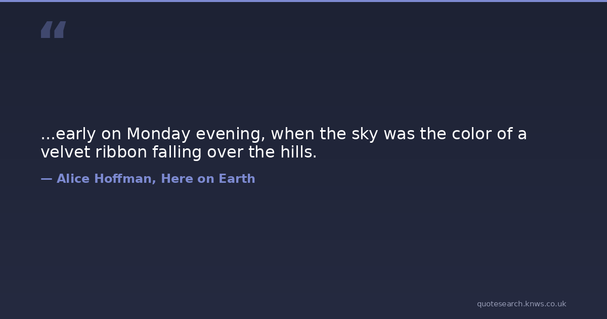 ...early on Monday evening, when the sky was the color of a velvet ribbon falling over the hills.