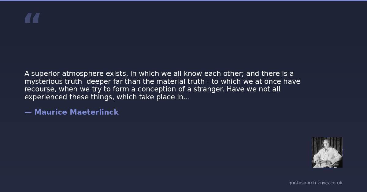 A superior atmosphere exists, in which we all know each other; and there is a mysterious truth deeper far than the material truth - to which we at once have recourse, when we try to form a conception of a stranger. Have we not all experienced these things, which take place in the impenetrable regions of almost astral humanity?