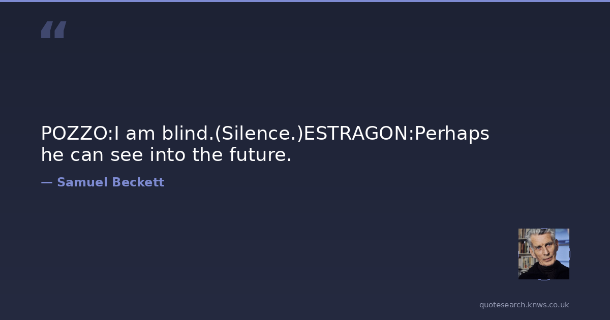 POZZO:I am blind.(Silence.)ESTRAGON:Perhaps he can see into the future.