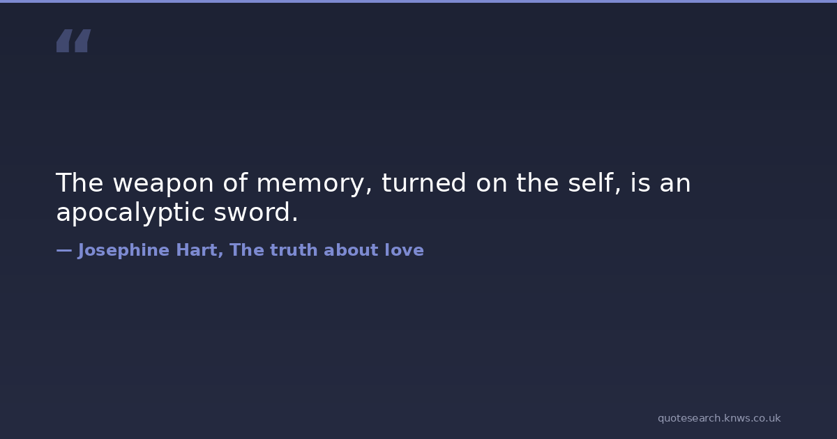 The weapon of memory, turned on the self, is an apocalyptic sword.