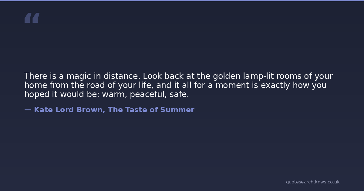 There is a magic in distance. Look back at the golden lamp-lit rooms of your home from the road of your life, and it all for a moment is exactly how you hoped it would be: warm, peaceful, safe.