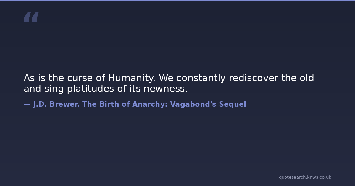 As is the curse of Humanity. We constantly rediscover the old and sing platitudes of its newness. cycles humanity repetition sequel the-birth-of-anarchy vagabond Download Image Share on X Share on Facebook Copy Link