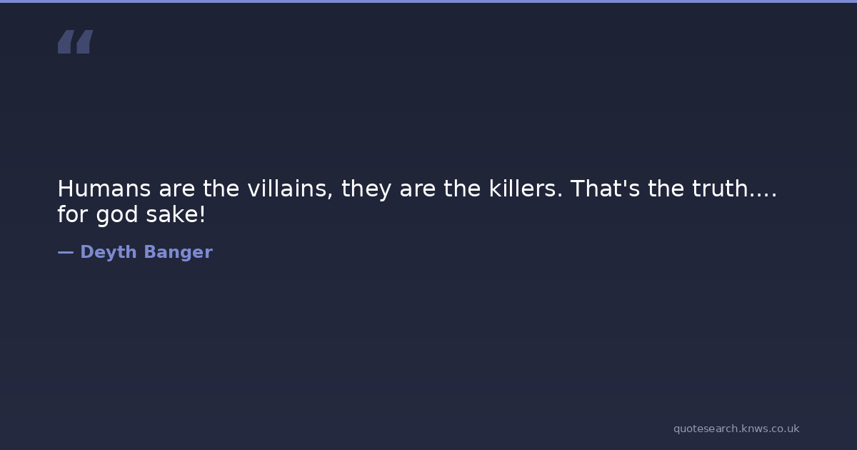 Humans are the villains, they are the killers. That's the truth.... for god sake! for god humanity humans killers sake truth villains Download Image Share on X Share on Facebook Copy Link
