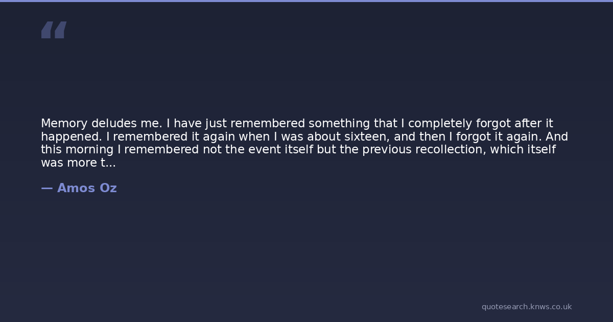Memory deludes me. I have just remembered something that I completely forgot after it happened. I remembered it again when I was about sixteen, and then I forgot it again. And this morning I remembered not the event itself but the previous recollection, which itself was more than forty years ago, as though an old moon were reflected in a windowpane from which it was reflected in a lake, from where memory draws not the reflection itself, which no longer exists, but only its whitened bones.