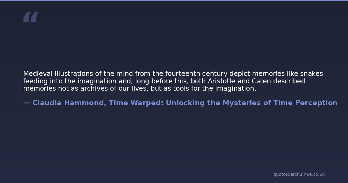 Medieval illustrations of the mind from the fourteenth century depict memories like snakes feeding into the imagination and, long before this, both Aristotle and Galen described memories not as archives of our lives, but as tools for the imagination.