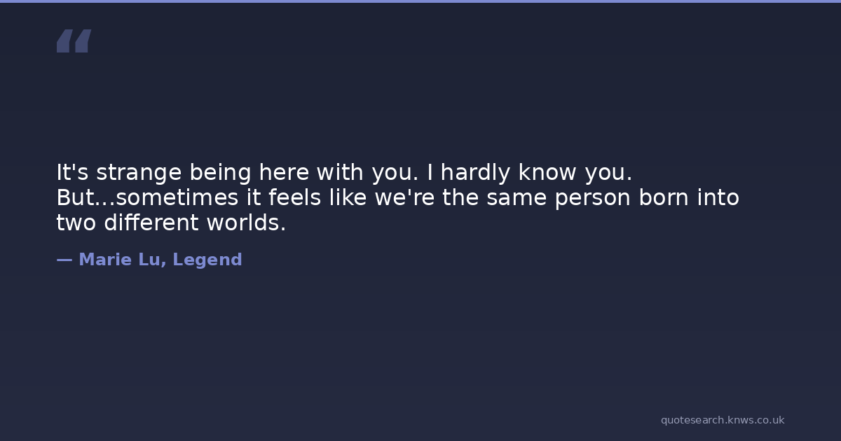 It's strange being here with you. I hardly know you. But...sometimes it feels like we're the same person born into two different worlds.