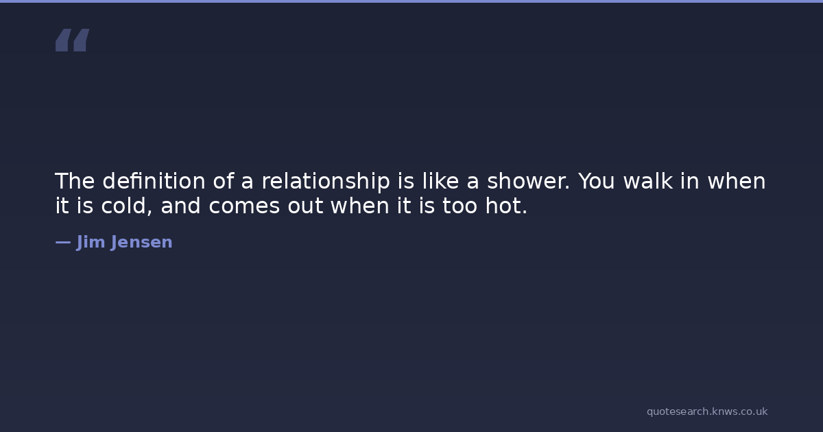 The definition of a relationship is like a shower. You walk in when it is cold, and comes out when it is too hot.