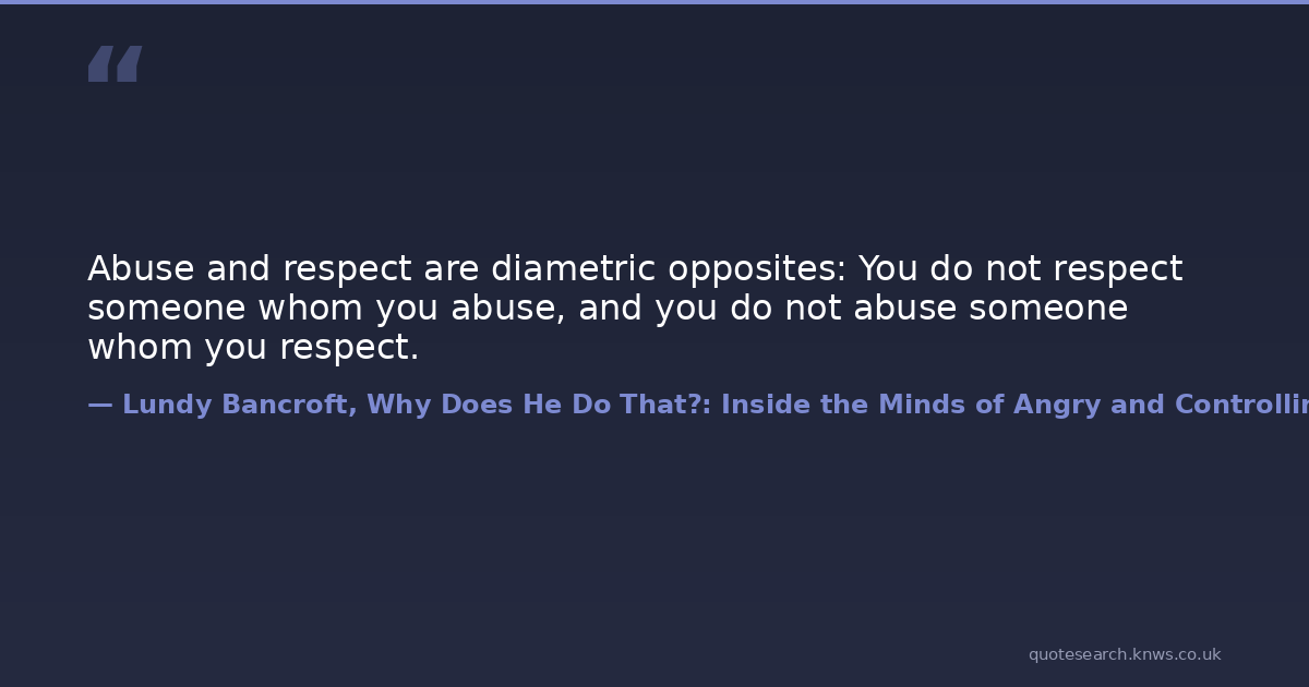 Abuse and respect are diametric opposites: You do not respect someone whom you abuse, and you do not abuse someone whom you respect.
