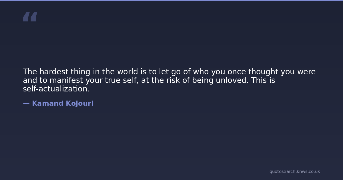The hardest thing in the world is to let go of who you once thought you were and to manifest your true self, at the risk of being unloved. This is self-actualization.