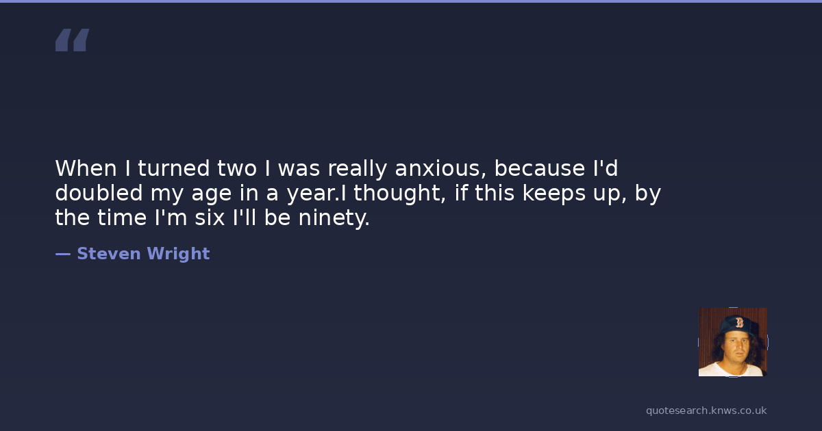 When I turned two I was really anxious, because I'd doubled my age in a year.I thought, if this keeps up, by the time I'm six I'll be ninety.