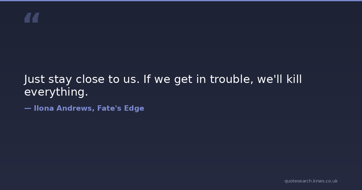 Just stay close to us. If we get in trouble, we'll kill everything. audrey cerise fate-s-edge funny ilona-andrews the-edge violent Download Image Share on X Share on Facebook Copy Link