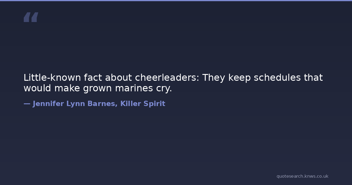 Little-known fact about cheerleaders: They keep schedules that would make grown marines cry. cheerleaders funny sarcastic toby Download Image Share on X Share on Facebook Copy Link
