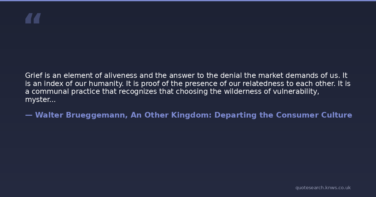 Grief is an element of aliveness and the answer to the denial the market demands of us. It is an index of our humanity. It is proof of the presence of our relatedness to each other. It is a communal practice that recognizes that choosing the wilderness of vulnerability, mystery, and anxiety was a good and life-affirming choice.
