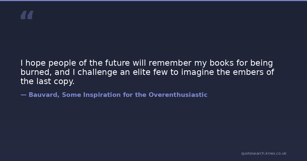 I hope people of the future will remember my books for being burned, and I challenge an elite few to imagine the embers of the last copy.
