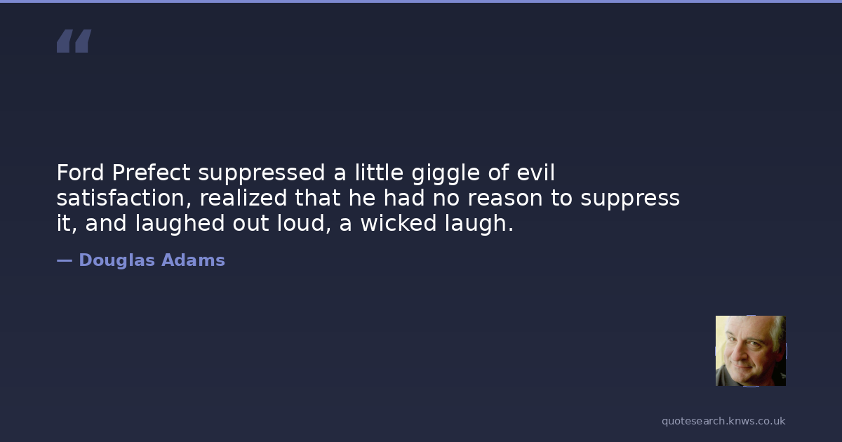 Ford Prefect suppressed a little giggle of evil satisfaction, realized that he had no reason to suppress it, and laughed out loud, a wicked laugh.