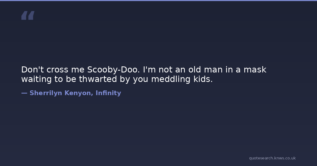 Don't cross me Scooby-Doo. I'm not an old man in a mask waiting to be thwarted by you meddling kids.
