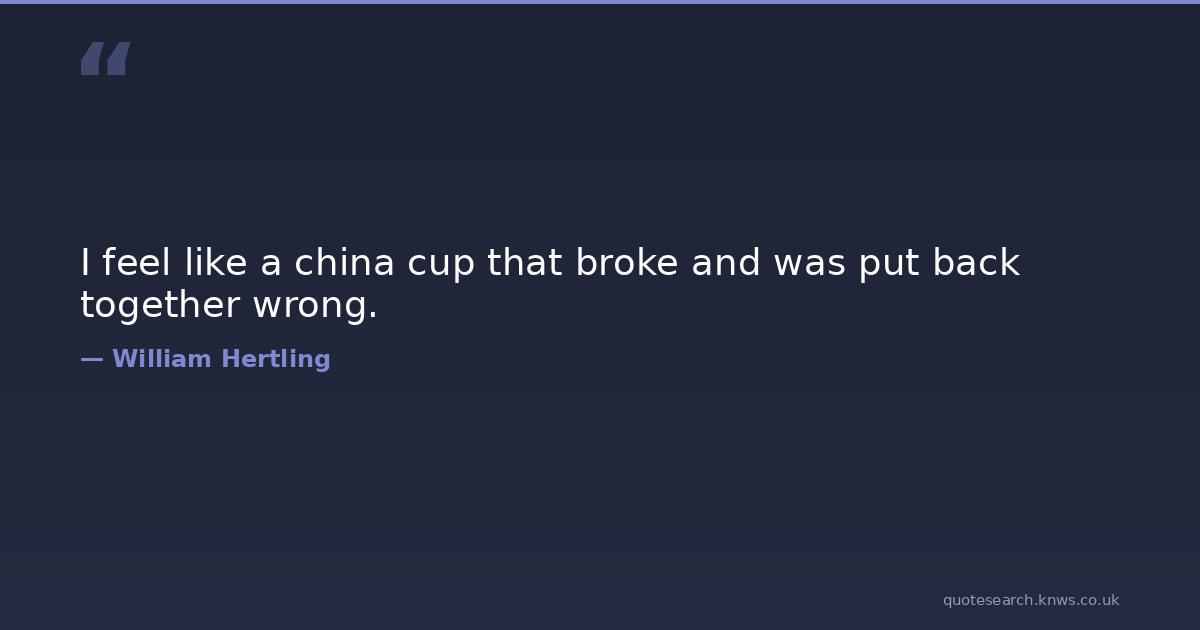 I feel like a china cup that broke and was put back together wrong. science-fiction Download Image Share on X Share on Facebook Copy Link
