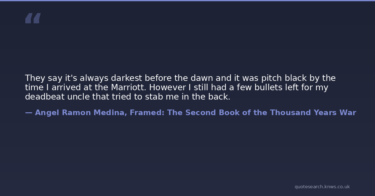 They say it's always darkest before the dawn and it was pitch black by the time I arrived at the Marriott. However I still had a few bullets left for my deadbeat uncle that tried to stab me in the back.