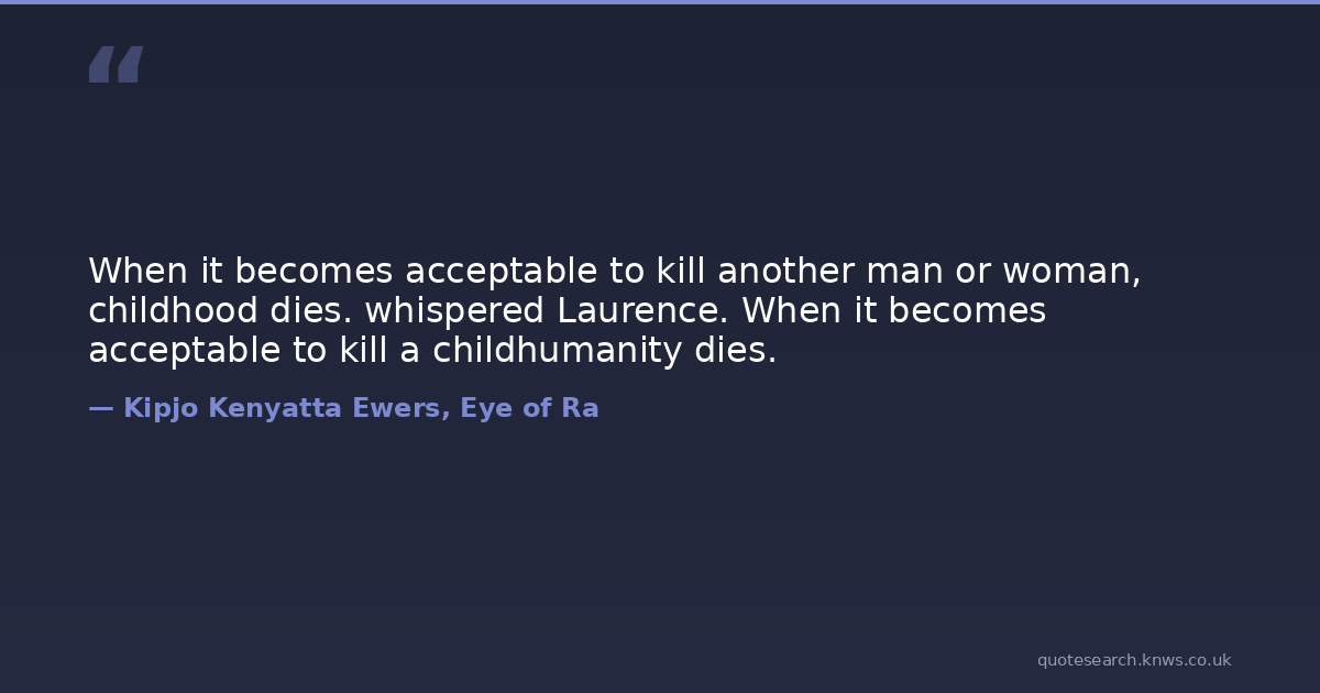 When it becomes acceptable to kill another man or woman, childhood dies. whispered Laurence. When it becomes acceptable to kill a childhumanity dies.