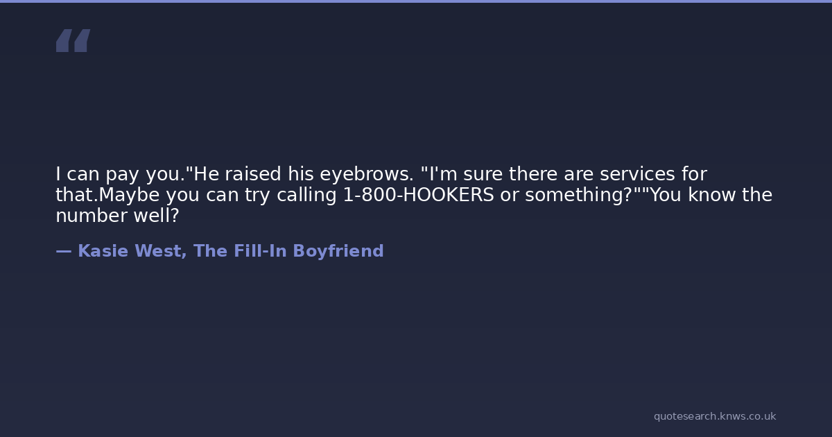 I can pay you."He raised his eyebrows. "I'm sure there are services for that.Maybe you can try calling 1-800-HOOKERS or something?""You know the number well?