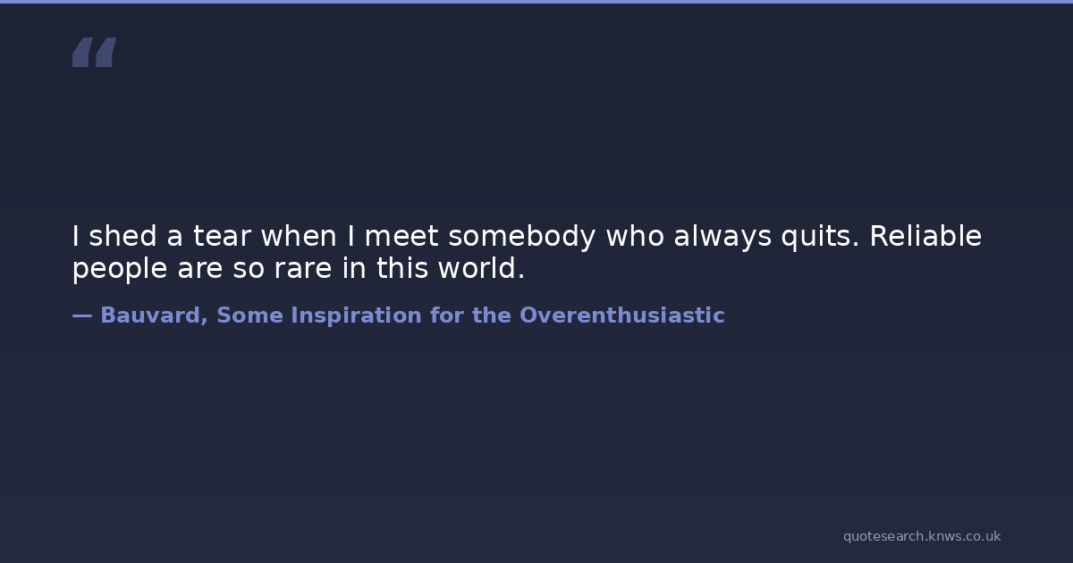 I shed a tear when I meet somebody who always quits. Reliable people are so rare in this world.