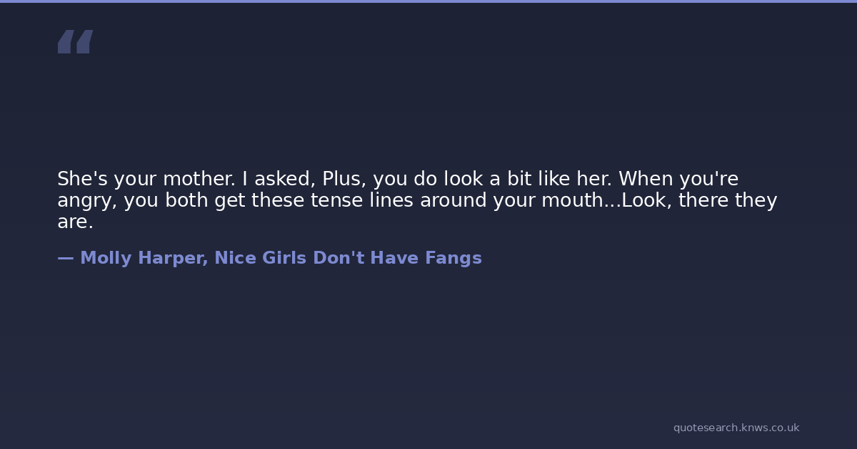 She's your mother. I asked, Plus, you do look a bit like her. When you're angry, you both get these tense lines around your mouth...Look, there they are.