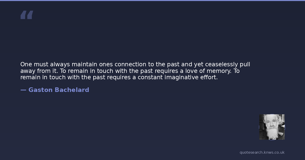 One must always maintain ones connection to the past and yet ceaselessly pull away from it. To remain in touch with the past requires a love of memory. To remain in touch with the past requires a constant imaginative effort.