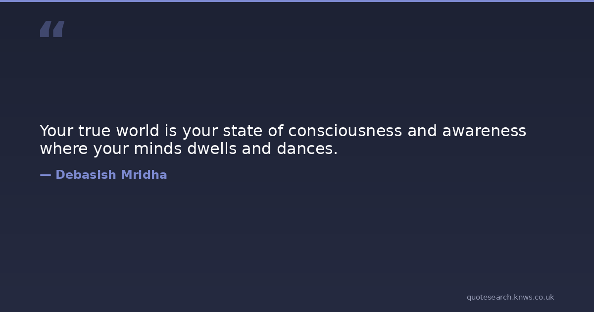 Your true world is your state of consciousness and awareness where your minds dwells and dances.