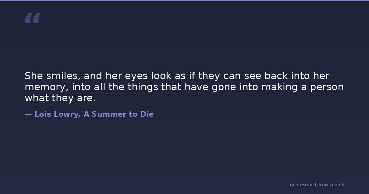 She smiles, and her eyes look as if they can see back into her memory, into all the things that have gone into making a person what they are.