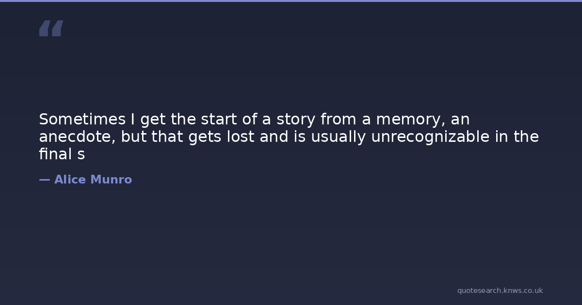 Sometimes I get the start of a story from a memory, an anecdote, but that gets lost and is usually unrecognizable in the final s