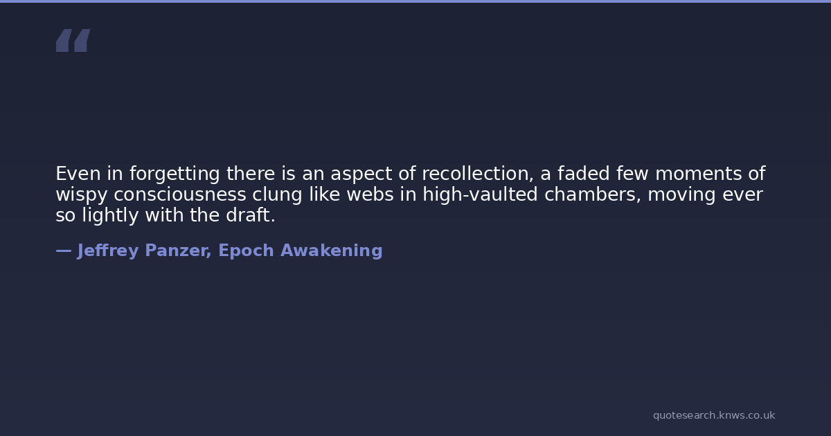 Even in forgetting there is an aspect of recollection, a faded few moments of wispy consciousness clung like webs in high-vaulted chambers, moving ever so lightly with the draft.