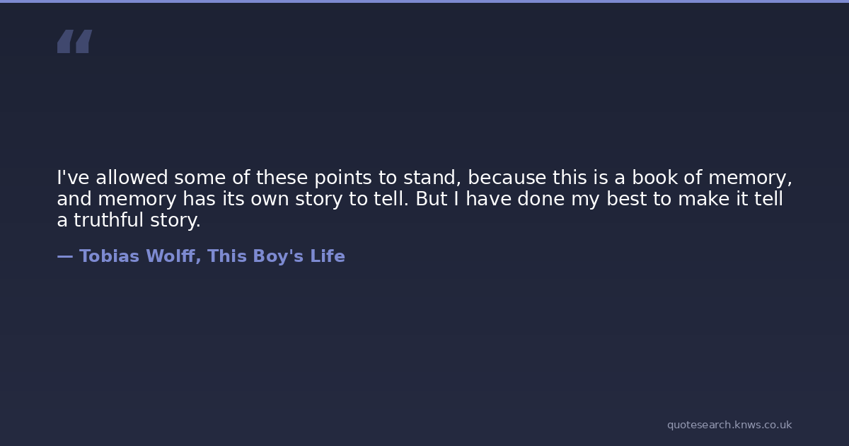 I've allowed some of these points to stand, because this is a book of memory, and memory has its own story to tell. But I have done my best to make it tell a truthful story.
