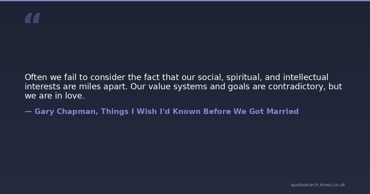 Often we fail to consider the fact that our social, spiritual, and intellectual interests are miles apart. Our value systems and goals are contradictory, but we are in love.