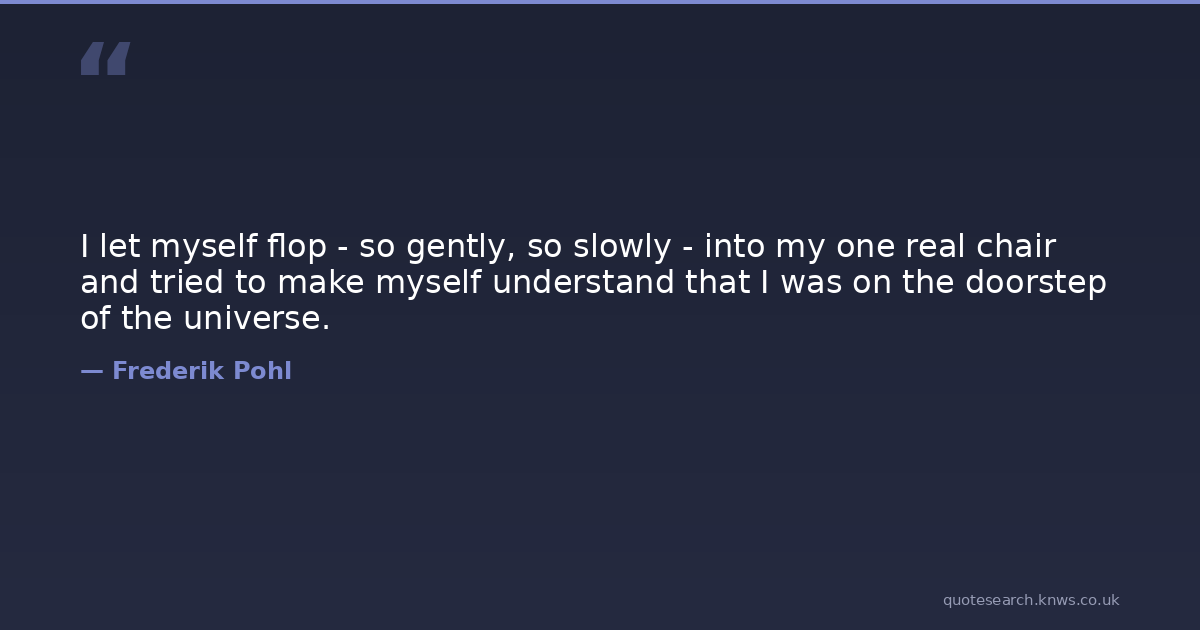 I let myself flop - so gently, so slowly - into my one real chair and tried to make myself understand that I was on the doorstep of the universe.
