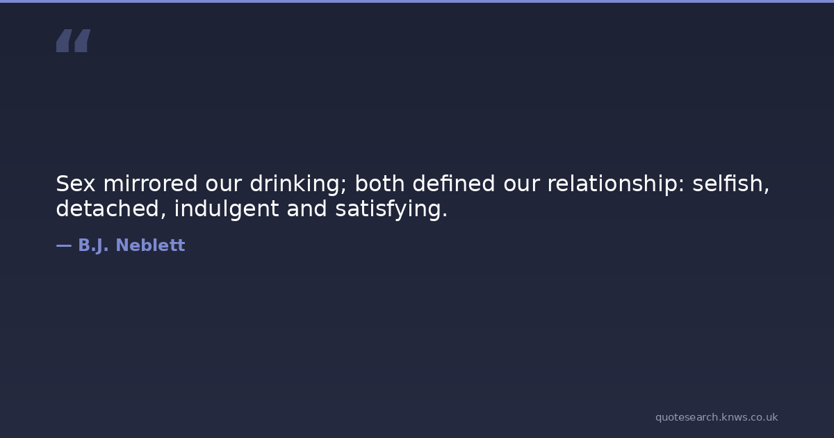 Sex mirrored our drinking; both defined our relationship: selfish, detached, indulgent and satisfying.