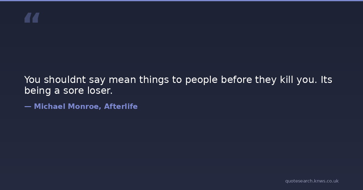 You shouldnt say mean things to people before they kill you. Its being a sore loser.