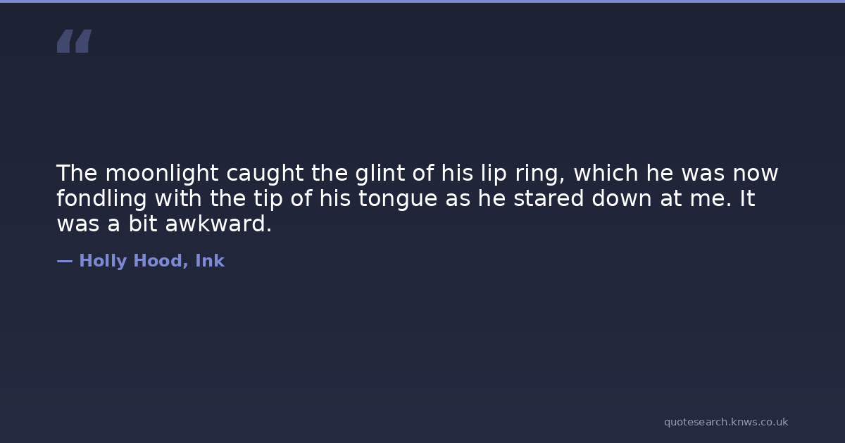 The moonlight caught the glint of his lip ring, which he was now fondling with the tip of his tongue as he stared down at me. It was a bit awkward.
