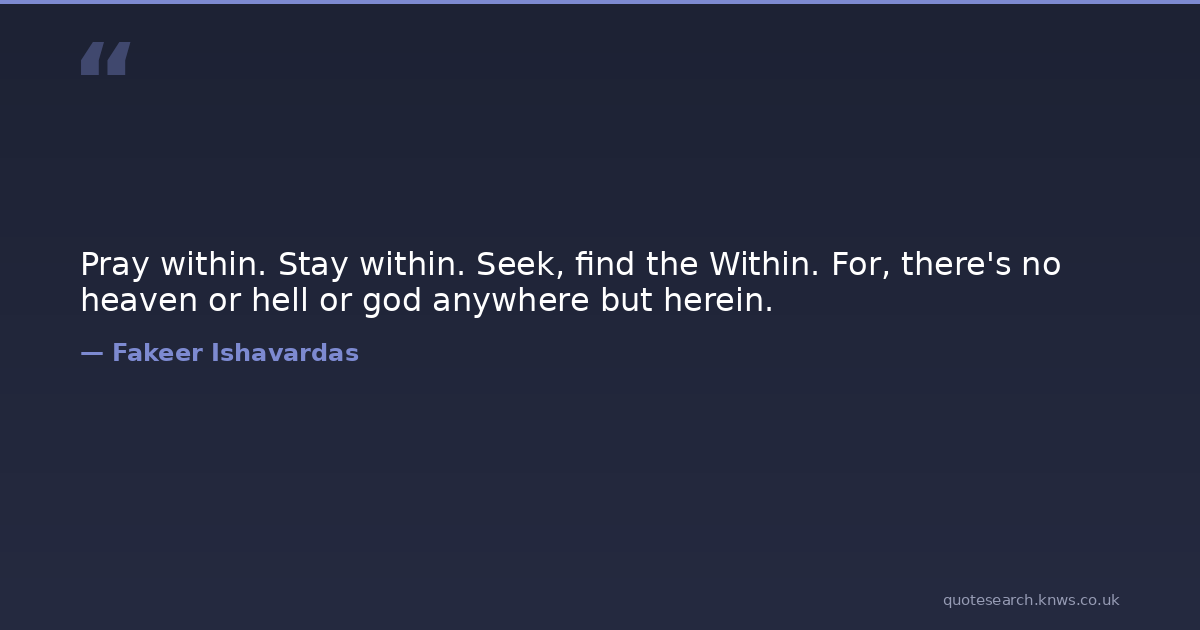 Pray within. Stay within. Seek, find the Within. For, there's no heaven or hell or god anywhere but herein.