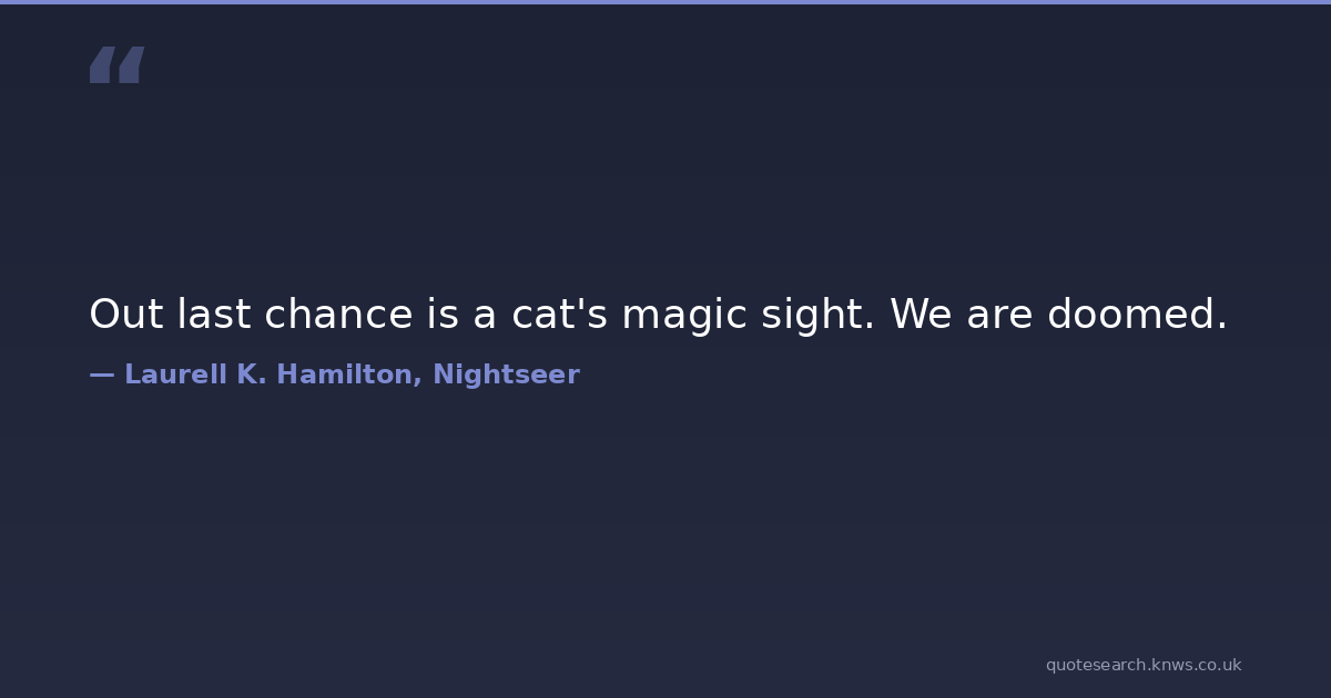 Out last chance is a cat's magic sight. We are doomed. animal cat humor magic Download Image Share on X Share on Facebook Copy Link