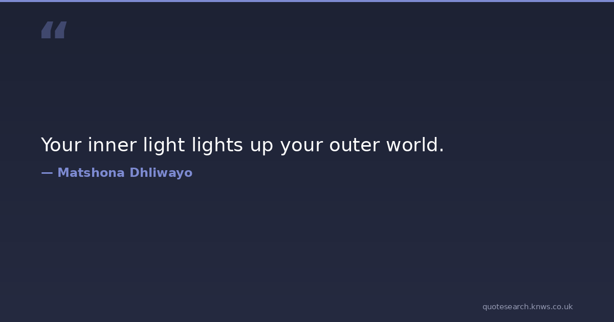 Your inner light lights up your outer world. caring-for-others caring-quotes charity-quotes enlightenment-quotes goodness-quotes helping-others-quotes inner-light-quotes inner-self-quotes inner-world-quotes kindness-quotes light-quotes love-quotes shine-your-light-quotes spiritual-quotes spirituality-quotes virtue-quotes Download Image Share on X Share on Facebook Copy Link
