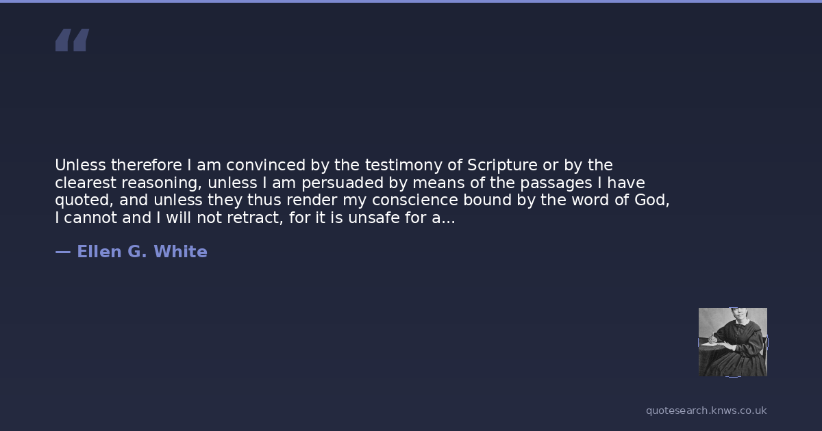 Unless therefore I am convinced by the testimony of Scripture or by the clearest reasoning, unless I am persuaded by means of the passages I have quoted, and unless they thus render my conscience bound by the word of God, I cannot and I will not retract, for it is unsafe for a Christian to speak against his conscience. Here I stand, I can do no other; may God help me. Amen."-Martin Luther