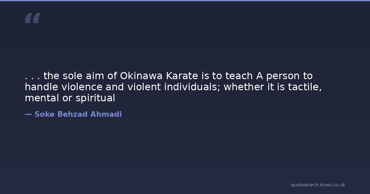 . . . the sole aim of Okinawa Karate is to teach A person to handle violence and violent individuals; whether it is tactile, mental or spiritual