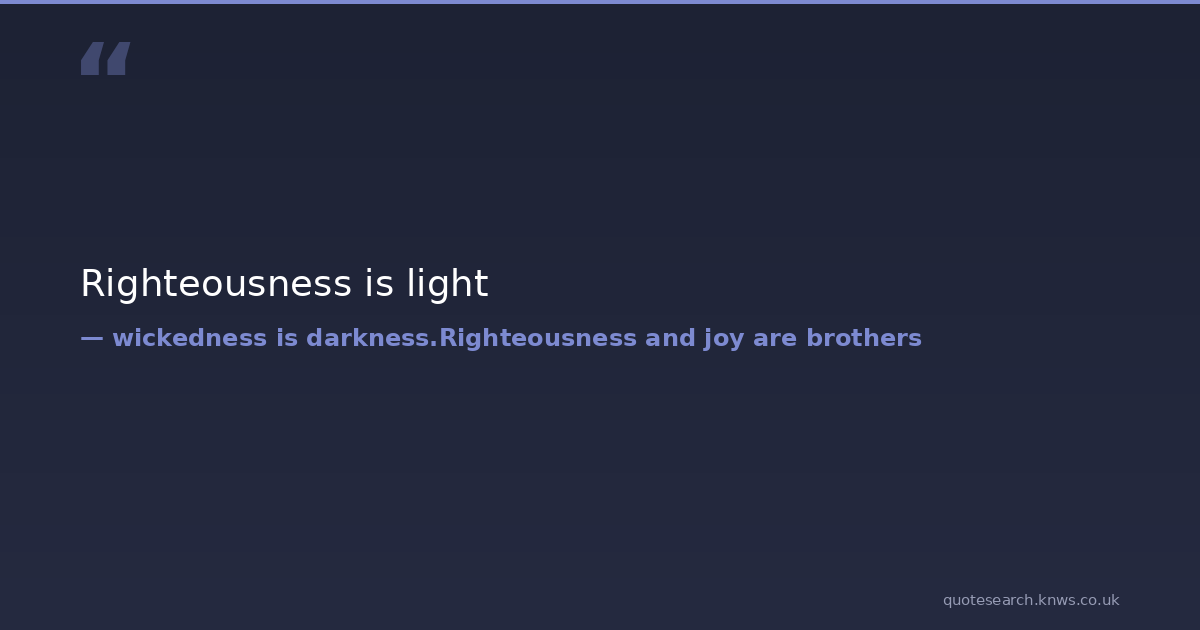 Righteousness is light evil and sorrow are cousins. Download Image Share on X Share on Facebook Copy Link