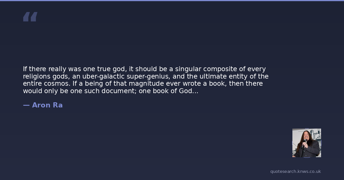 If there really was one true god, it should be a singular composite of every religions gods, an uber-galactic super-genius, and the ultimate entity of the entire cosmos. If a being of that magnitude ever wrote a book, then there would only be one such document; one book of God. It would be dominant everywhere in the world with no predecessors or parallels or alternatives in any language, because mere human authors couldnt possibly compete with it. And you wouldnt need faith to believe it, because it would be consistent with all evidence and demonstrably true, revealing profound morality and wisdom far beyond contemporary human capacity. It would invariably inspire a unity of common belief for every reader. If God wrote it, we could expect no less. But what we see instead is the very opposite of that.