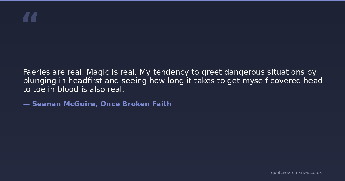 Faeries are real. Magic is real. My tendency to greet dangerous situations by plunging in headfirst and seeing how long it takes to get myself covered head to toe in blood is also real.