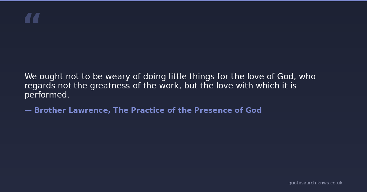 We ought not to be weary of doing little things for the love of God, who regards not the greatness of the work, but the love with which it is performed.