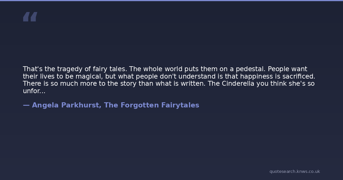 That's the tragedy of fairy tales. The whole world puts them on a pedestal. People want their lives to be magical, but what people don't understand is that happiness is sacrificed. There is so much more to the story than what is written. The Cinderella you think she's so unfortunate with her mean sisters and stepmom. You think she deserves a happy ending with a prince, but the twenty-page journey is all you see. You learn little about who she is. What if Cinderella's just a good actress who has everyone fooled, when really, she sucks. She more than sucks.