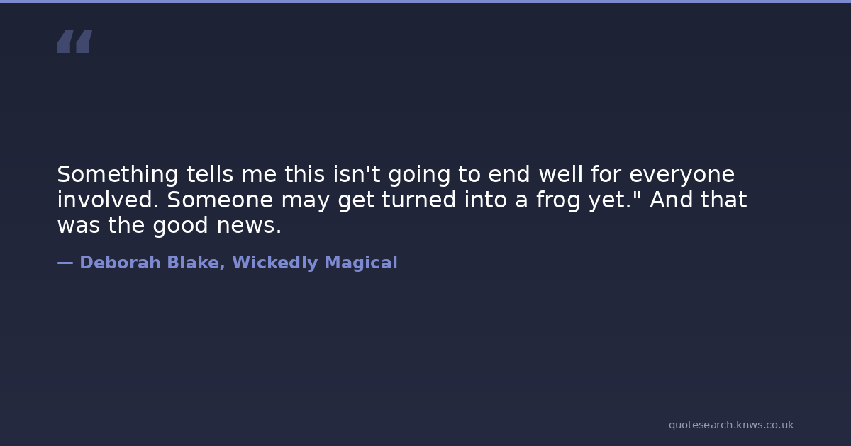 Something tells me this isn't going to end well for everyone involved. Someone may get turned into a frog yet." And that was the good news.