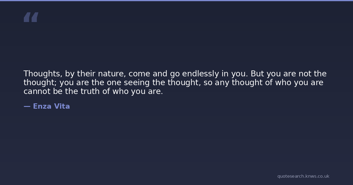 Thoughts, by their nature, come and go endlessly in you. But you are not the thought; you are the one seeing the thought, so any thought of who you are cannot be the truth of who you are.