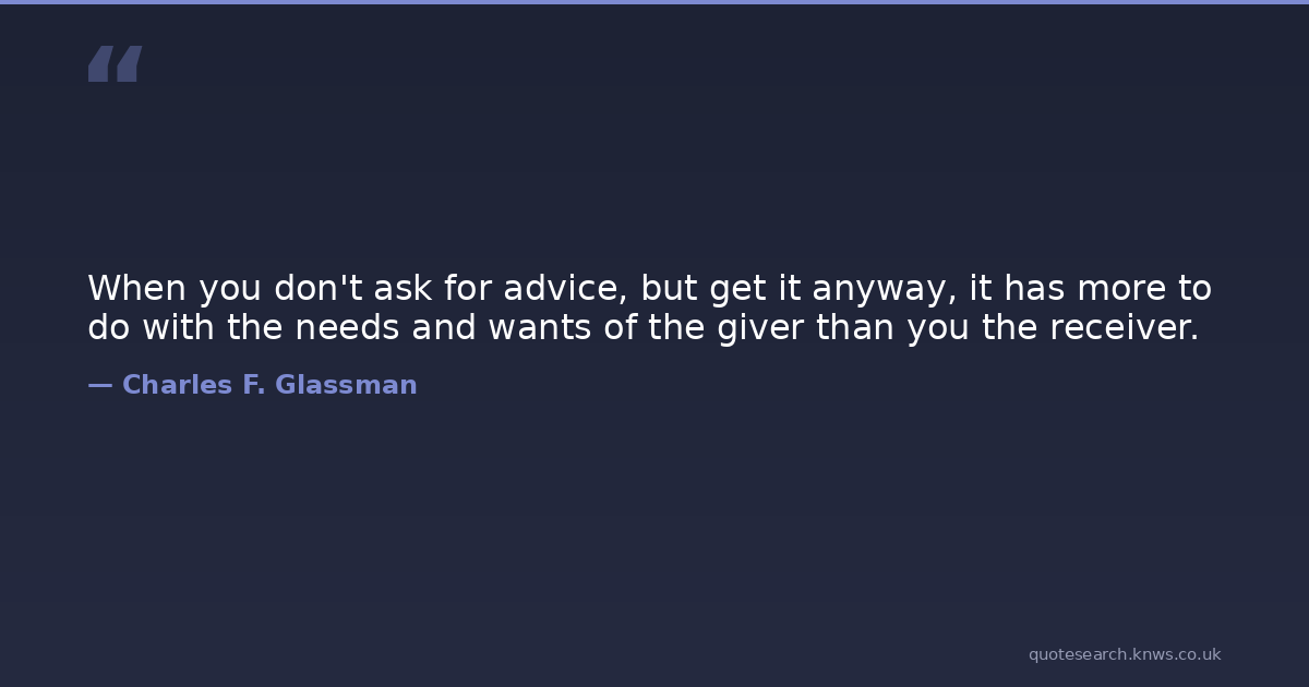 When you don't ask for advice, but get it anyway, it has more to do with the needs and wants of the giver than you the receiver.